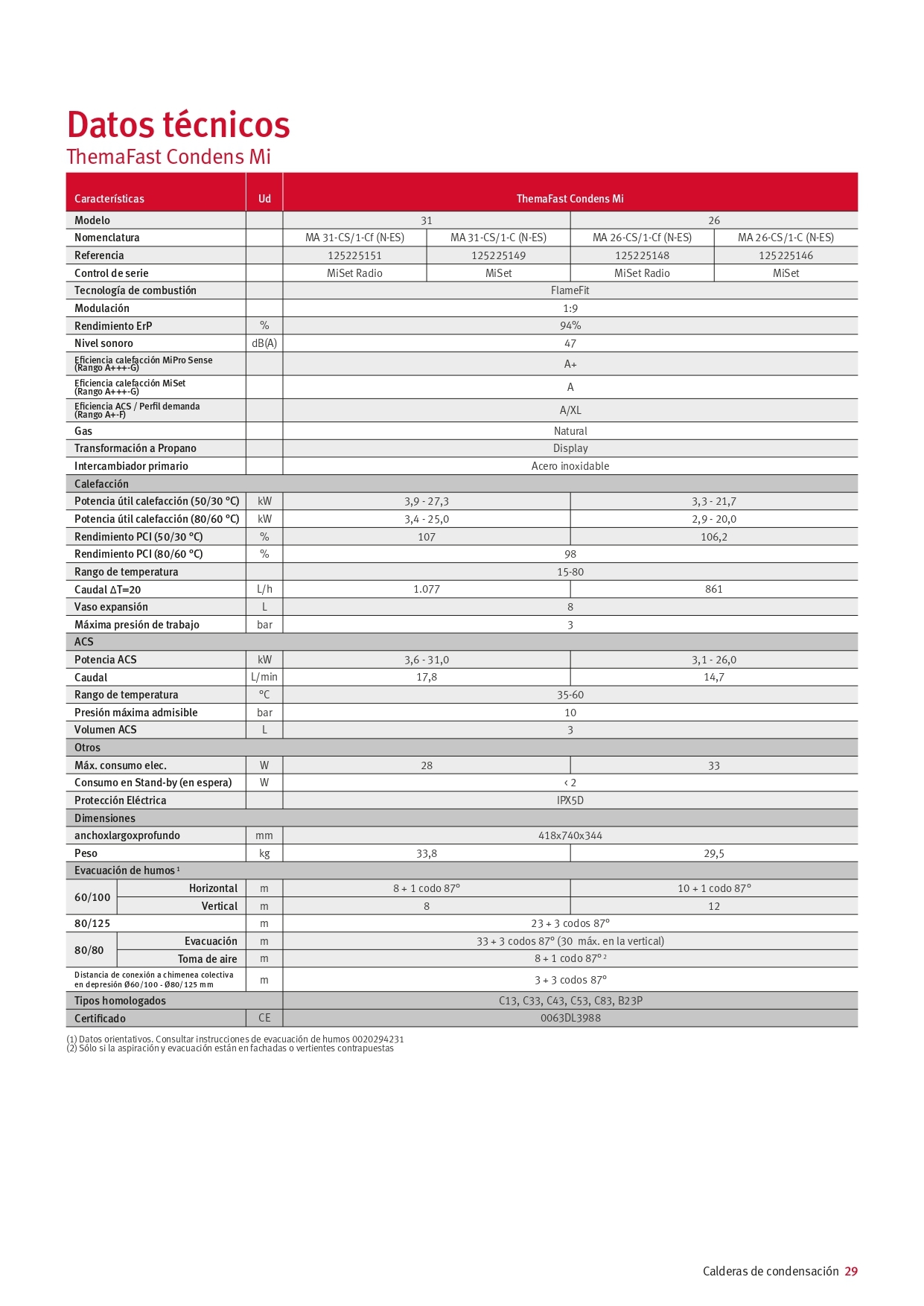 | Tipo de caldera | Gas natural, condensación | |