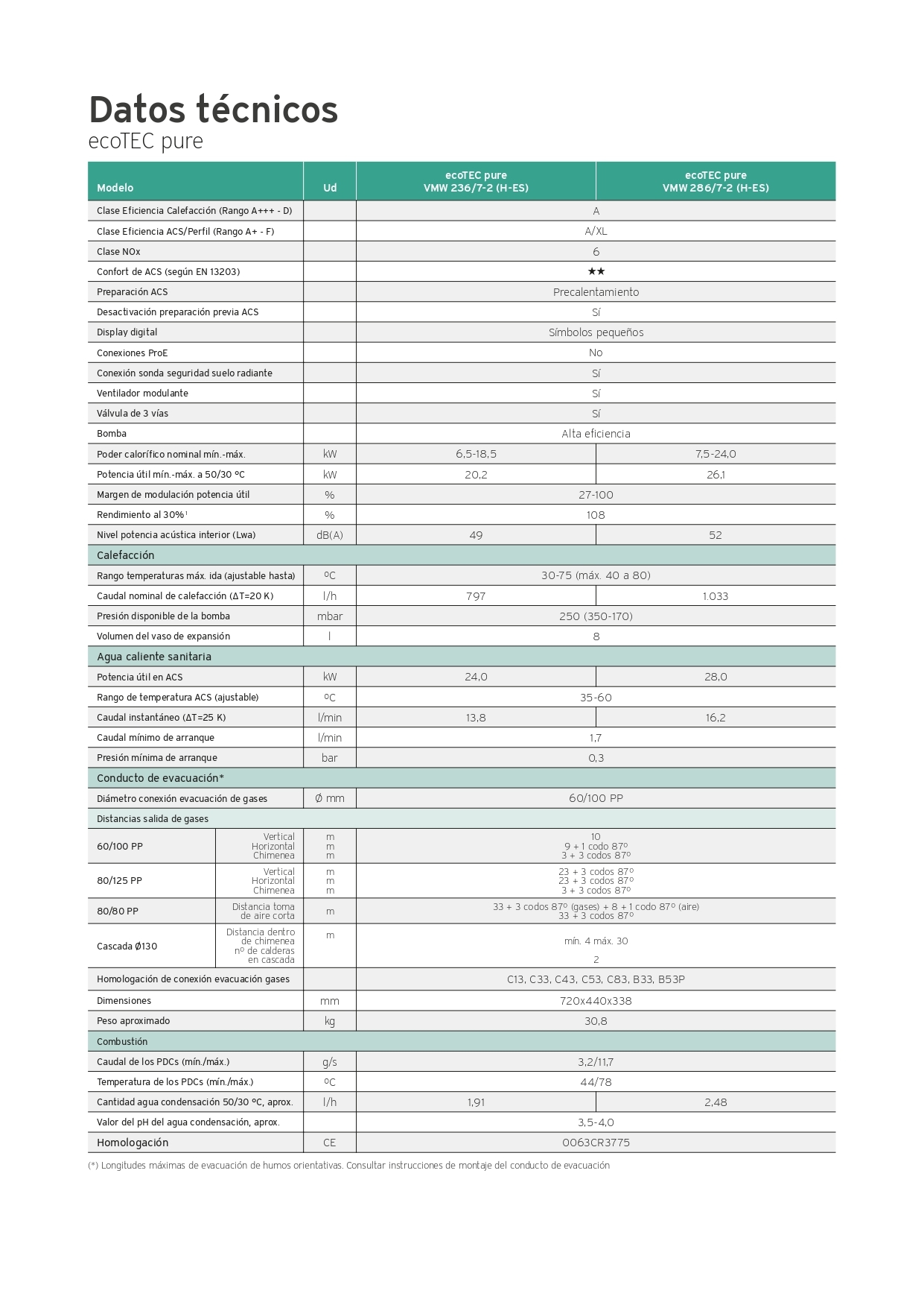 La Caldera Vaillant ecoTEC pure VMW ES 236/7-2 es una opción ideal para sustituir de forma económica un aparato antiguo en pisos y edificios de apartamentos. Aquí tienes algunos detalles sobre esta caldera de condensación a gas: